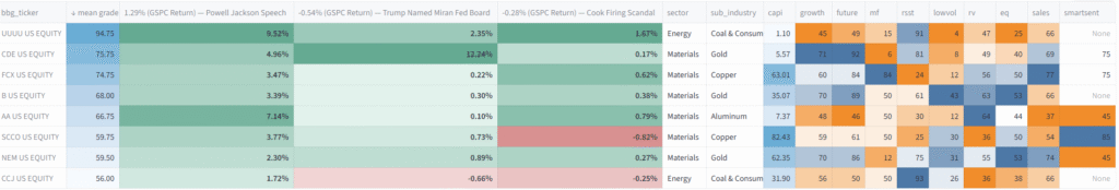 - Energy Fuels (UUUU) +9.52% as uranium miners adn rare earths benefit from both energy security themes and speculative flows. Inflation helps via strong uranium prices, while rate cuts make financing easier for capital-heavy projects.