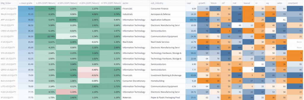 - CRDO (Credo Technology) – Provides connectivity solutions for data infrastructure; strong earnings surprise of 43%, benefits from rising data/AI investment enabled by cheaper capital.